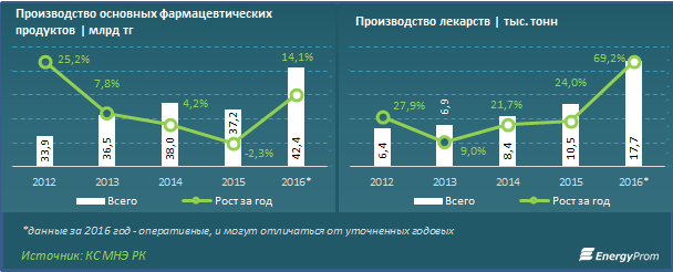 За 2016 год рост выпуска фармпродукции в стоимостном выражении составлял 14,1 процента год к году. В многолетней динамике небольшой спад (минус 2,3 процента за год) наблюдался лишь в 2015-м, прочие годы показывали стабильный прирост.
