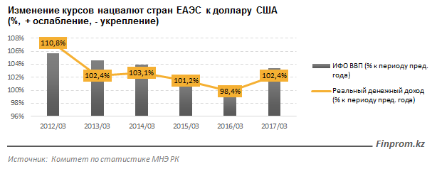"В ноябре 2016 года этот рост удалось немного обуздать - если принять во внимание уровень инфляции в ноябре 2015 года (12,8 процента) и соответствующее падение реальных доходов населения, то ценам фактически некуда было расти. Темпы инфляции в Казахстане продолжают замедляться, однако все еще остаются самыми высокими среди стран ЕАЭС. Мы опережаем по уровню Беларусь (6,3 процента по сравнению с апрелем 2016 года), пережившую в 2016 году деноминацию нацвалюты)", - комментируют аналитики.