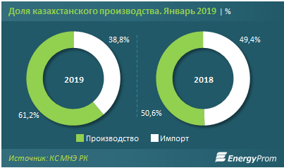 По итогам января текущего года доля казахстанского производства в сегменте легковых авто увеличилась с 50,6 до 61,2 процента. Доля импорта, соответственно, сократилась: с 49,4 до 38,8 процента за год.