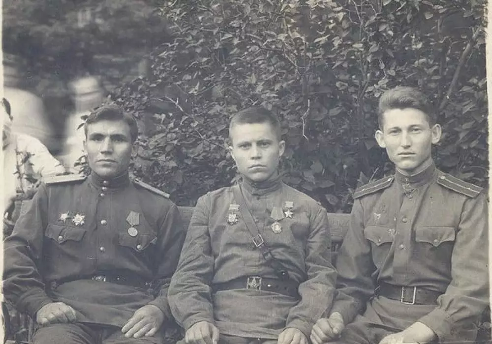 Иван Косенков (в центре) с боевыми товарищами на фронте.