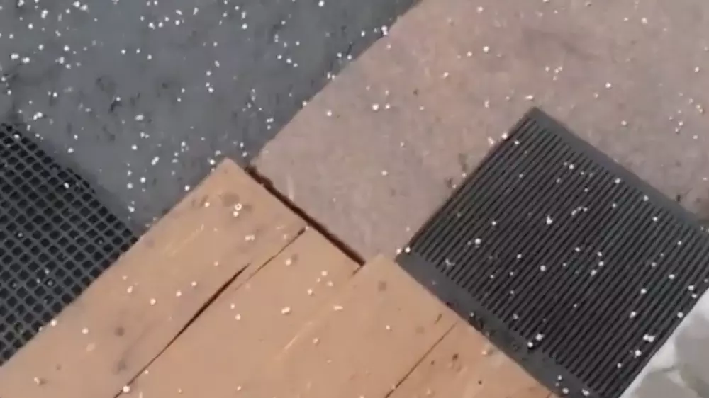Жители сообщают, что град выпал в районе КСК сегодня утром.