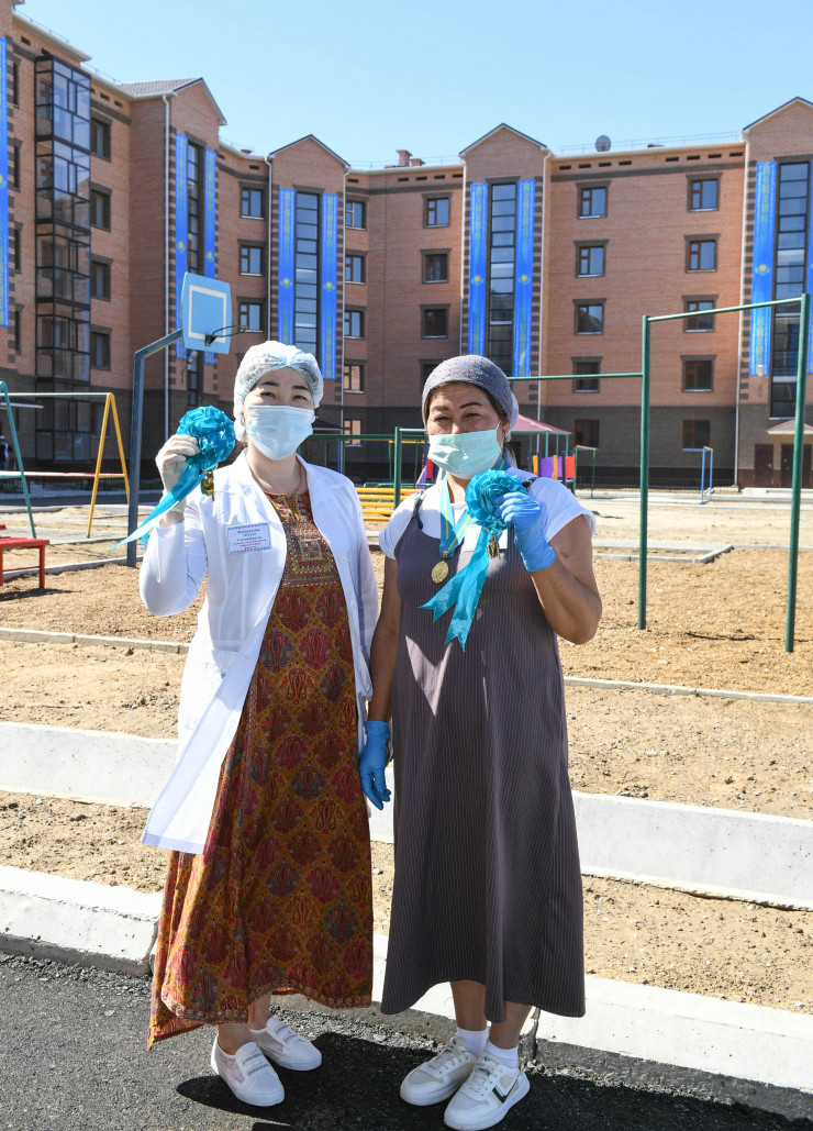 В преддверии Дня столицы и Национального дня домбры на левом берегу реки Сырдарья семьям из социально уязвимых слоев населения вручены ключи от арендных жилых квартир, построенных в рамках программы "Нұрлы жер".