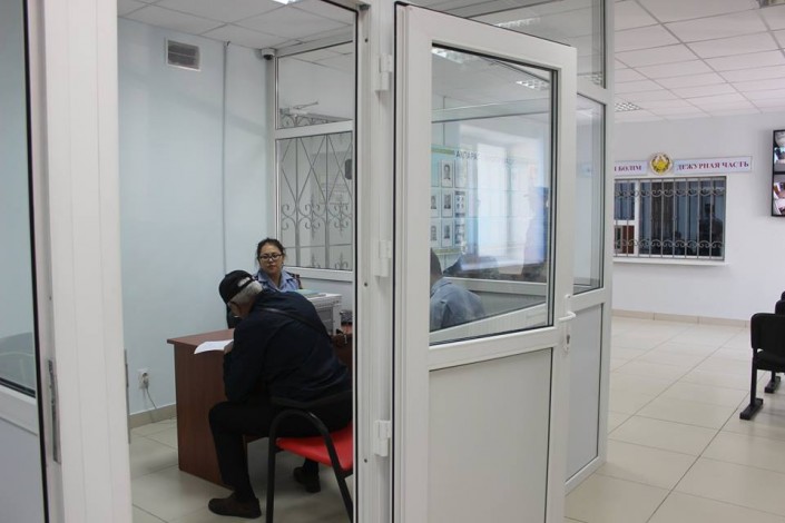 "В настоящее время на первом этаже УВД Костаная расположены два прозрачных кабинета следователей, также установлена 21 камера видеонаблюдения в кабинетах следователей. Изображение камер в режиме онлайн проектируется на широкоформатный экран телевизора, расположенный на первом этаже холла здания полиции. Каждый посетитель, родственник задержанного и непосредственно сотрудник прокуратуры может видеть все действия через монитор", - рассказал Мейрам Базарбаев.