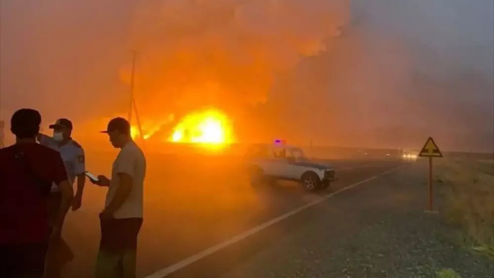 Временно перекрыты дороги к месту происшествия, в том числе автодороги и железная дорога сообщением Тараз - Алматы.
