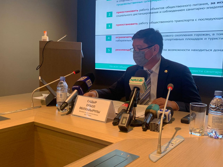 "Приостанавливается деятельность крупных торговых сетей – продовольственных и непродовольственных рынков, универсальных базаров, торгово-развлекательных и торговых центров, фитнес-центров, бассейнов и спортивных комплексов", - комментирует первый заместитель акима города Ербол Садыр.