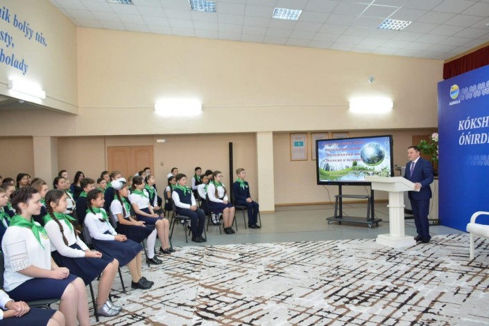 На экоуроке аким области особо обратил внимание учеников на реализацию в области программы по созданию зеленого пояса вокруг Астаны, инициированной Первым Президентом страны. В регионе с 2009 года ведутся работы по объединению лесного массива Щучинско-Боровской курортной зоны с зеленым поясом вокруг города Нур-Султана. За последние 10 лет общая площадь лесонасаждений на данном участке составила свыше 2,5 тысячи гектаров. Это 160 километров. Посажено более 6 миллионов деревьев и кустарников.