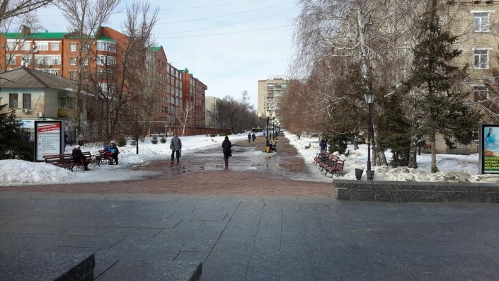 В Костанае после теплых выходных, которым предшествовал гололед, слегка подмораживает. С утра было 6 градусов ниже нуля, к обеду ожидается минус 1, к вечеру до минус 3. Переменная облачность.