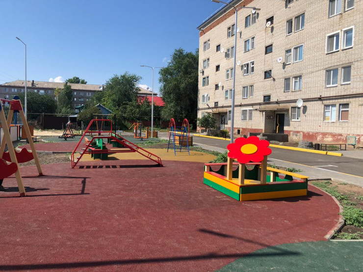 В 6 благоустроенных дворах установлены спортивные площадки, и во всех 11 дворах построены детские игровые площадки. В основном были выполнены такие работы, как устройство подъездных путей, укладка асфальтобетонного покрытия, брусчатки, бортовых камней, установка детских игровых площадок, спортивных площадок, а также малых архитектурных форм.