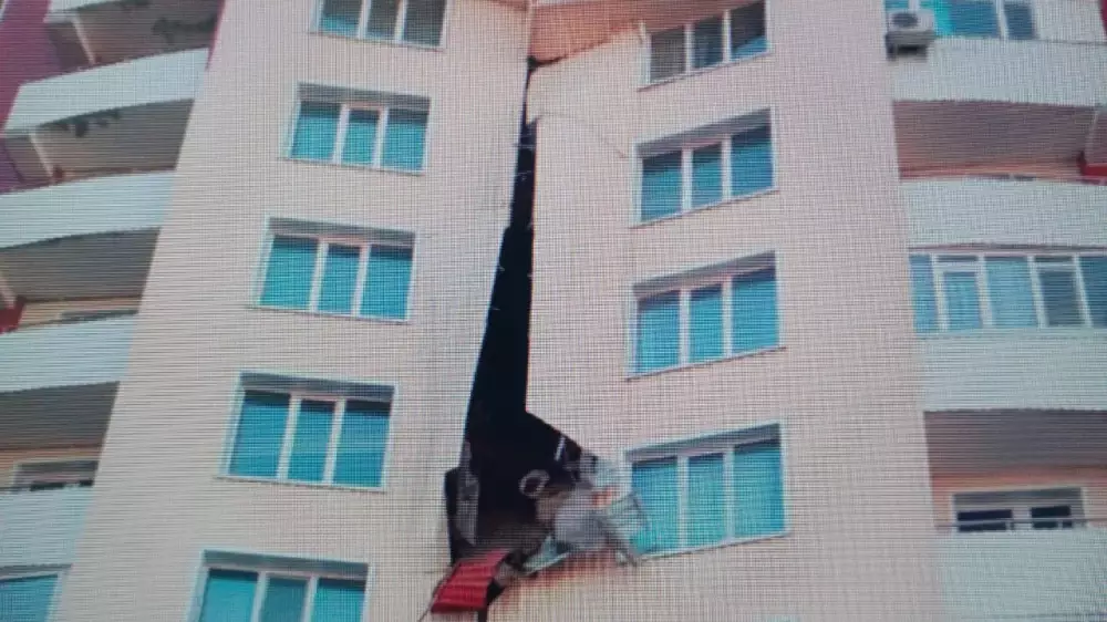 Видео одного из жителей дома, расположенного по улице Бауыржана Момышулы, 14, распространяется в Сети. На нем показан многоэтажный дом с огромной трещиной в стене. Здесь между четвертым и пятым этажами лопнула обшивка, передает корреспондент Tengrinews.kz.