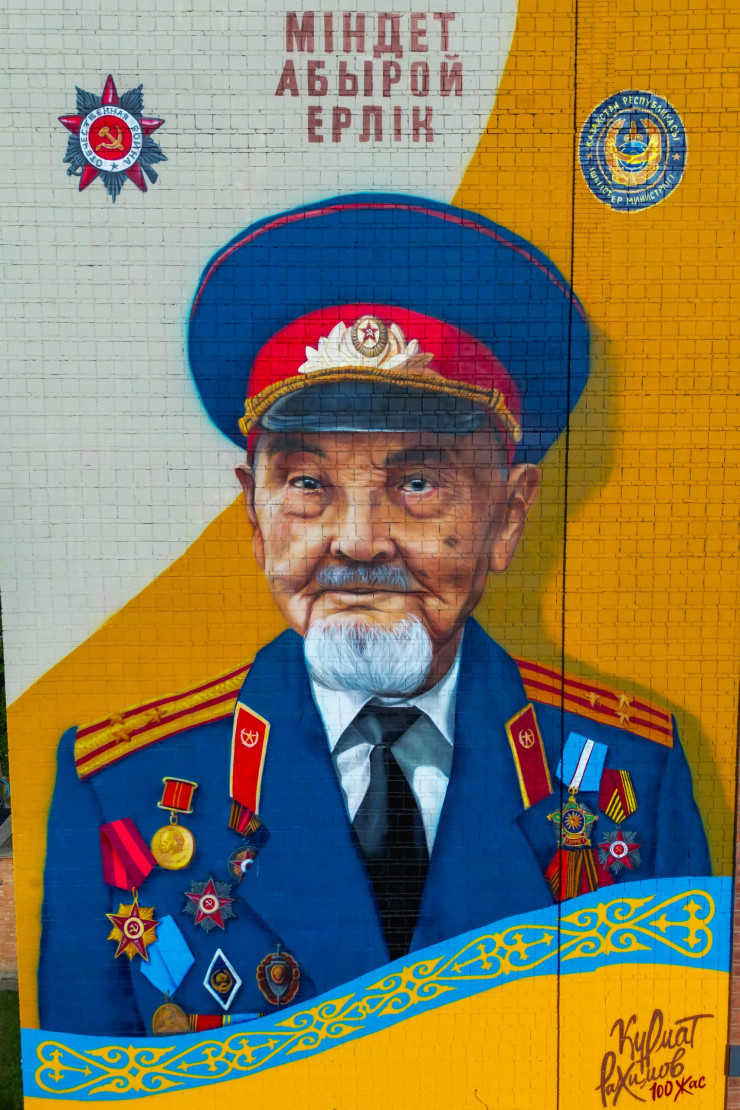 Поздравить ветерана с этим знаменательным событием приехал генерал-майор полиции, заместитель министра внутренних дел РК Айдар Сайтбеков. Он отметил, что в органах внутренних дел всегда очень ценят те знания и опыт, которые сотрудники передают молодому поколению, даже находясь на заслуженном отдыхе. И этот мурал — знак благодарности за подвиги в военное время и стремление к справедливости в мирное.