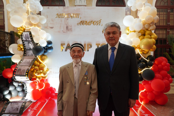 В день рождения юбиляра была организована ретролента с фотографиями и уголок рабочего кабинета в стиле 1960-х годов, где глава региона Ермек Кошербаев поздравил Курмата Рахимовича и с теплотой вспомнил, как они с ветеранами отмечали День Победы в Левобережном парке за солдатской кашей и историями о военном времени.