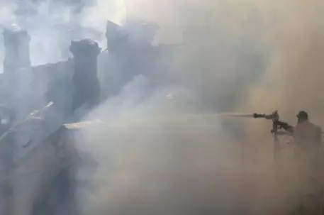 По данным МЧС, склад размещался в двухэтажном здании площадью пять на 30 метров. В районе места происшествия работают 22 единицы техники, 57 человек, скорая помощь и опергруппа МЧС.