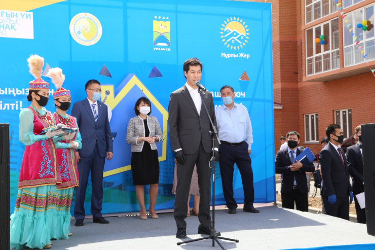 "Вы знаете, что еще 4-5 лет назад это место было равнинным пустырем. А на сегодняшний день благодаря государственной программе "Нұрлы жер", направленной на решение жилищных проблем в стране, стало возможным строительство здесь таких многоквартирных жилых домов. В эти дома вселяются 284 семьи, в которых проживает порядка 400 детей. Программа "Нурлы жер" была начата по инициативе Елбасы, - сказал аким ЗКО Гали Искалиев. - Будущее страны зависит от подрастающего поколения. И наша главная цель - чтобы наши дети жили в таких современных и комфортных домах, получали знания в новых детских садах и школах".
