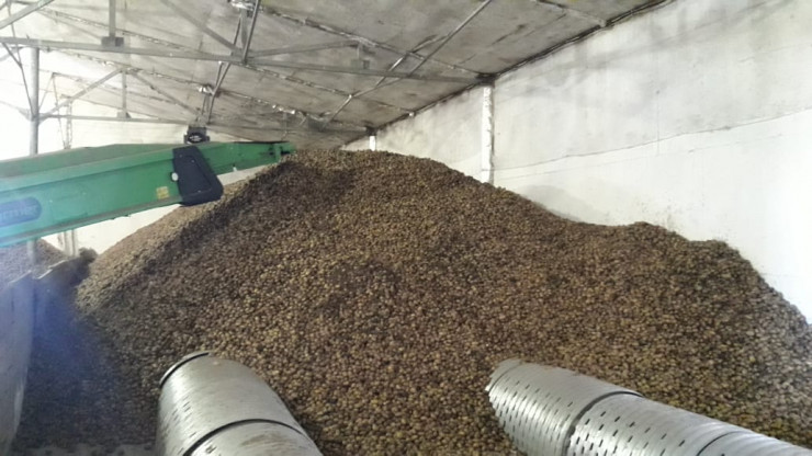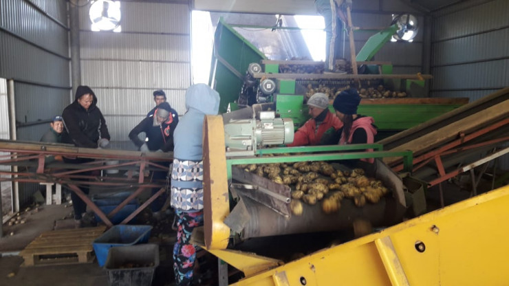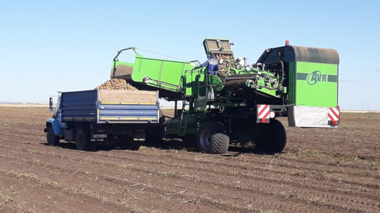 Практически весь процесс уборки картофеля автоматизирован. Уже в ангарах только нужны рабочие руки, которые сортируют картофель на продажу, на семена и неликвид. Далее расфасовывают по мешкам и отправляют на продажу. Урожай этого года уже направляется в Актюбинскую, Южно-Казахстанскую, Атыраускую, Мангистаускую области, а оставшийся картофель продают на местных рынках. В качестве государственной поддержки хозяйство получило в этом году субсидии на гербициды и поливальную технику. У крестьянского хозяйства имеются собственные овощехранилища: четыре подземных склада и одно наземное хранилище. Наряду с уборкой картофеля в крестьянском хозяйстве готовят также помещения под семена и собранный урожай.