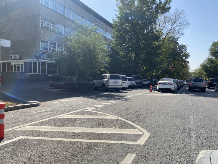 Велополосы на улицах Алматы: водители указали на странную организацию парковок Разметка перед бизнес-центром "Кадам Инвест". Фото ©Tengrinews.kz/Шокан Алхабаев