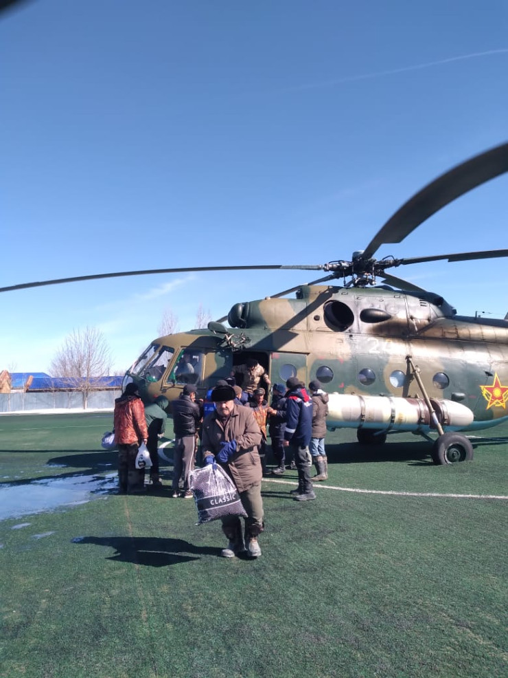 В Уилском районе из затопленного поселка имени Ш. Берсиева совершен первый рейс с эвакуированными жителями. По данным чиновников, на борту вертолета в безопасную зону доставили 27 жителей населенного пункта. Среди них 9 женщин, 10 мужчин и 8 детей.