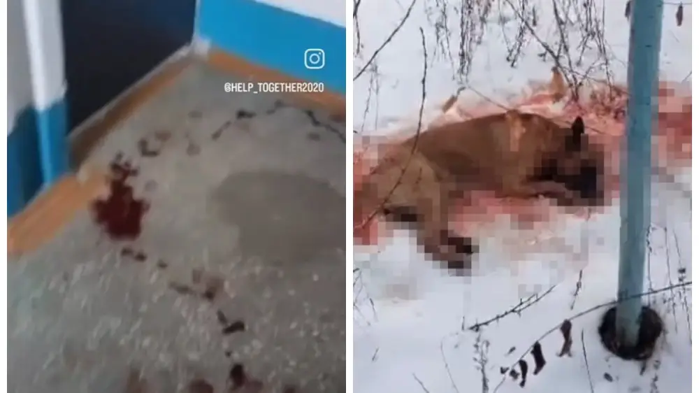 Уже на улице женщина обнаружила умирающую в луже крови собаку. "Будто ей перерезали горло", - комментирует напуганная горожанка.