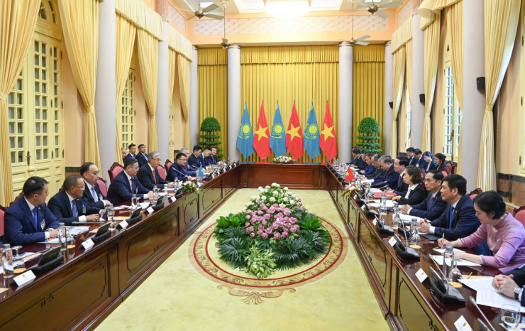 В ходе переговоров Главы государства с президентом Вьетнама Во Ван Тхыонгом были обсуждены перспективы развития сотрудничества в торгово-экономической, инвестиционной, энергетической, транспортно-логистической, агропромышленной и культурно-гуманитарной сферах.