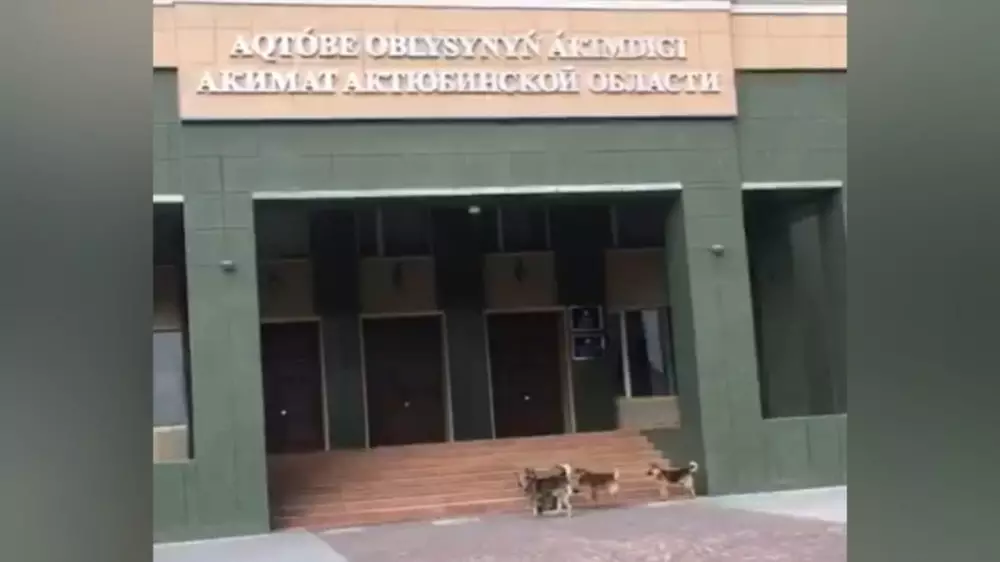 В социальных сетях появилось видео разгуливающих у дверей акимата Актюбинской области бродячих собак, передает корреспондент Tengrinews.kz.