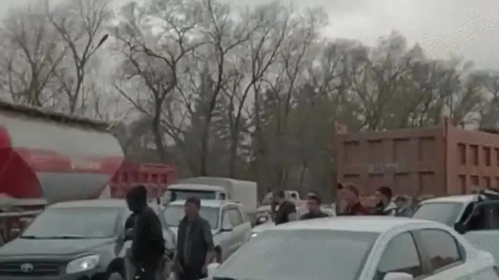 Читатели прислали в редакцию видео, на котором водители большегрузов скопились у автозаправочной станции на Кульджинской трассе. Авторы видео утверждают, что перекрыли участок дороги.