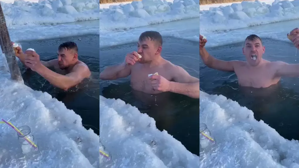 Идею снимать ролики в проруби с мороженым Владимир позаимствовал у российского TikTok-блогера. Однако казахстанец пошел дальше: он ест в ледяной воде и казахские национальные продукты. Например, курт, который запивает таном или кумысом.
