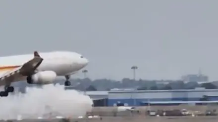 Опубликовавший видео пользователь TikTok снял белые клубы дыма, задаваясь вопросом "Что происходит?", но отметил, что при этом самолеты спокойно садятся.