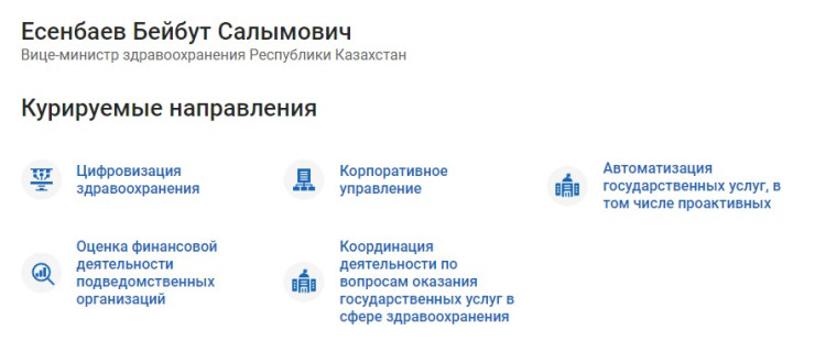 "Постановлением правительства Есенбаев Бейбут Салымович освобожден от должности вице-министра здравоохранения согласно поданному заявлению", - говорится в сообщении.