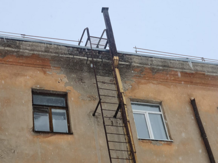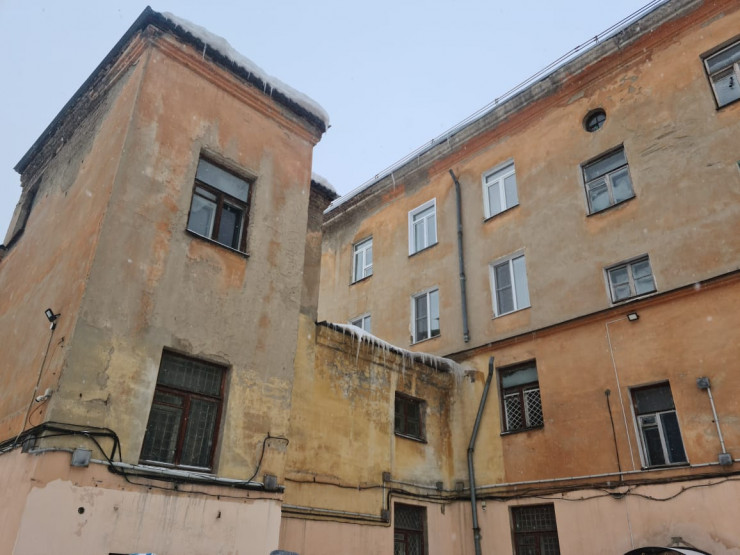 Летом 2020 года фасады сразу нескольких таких зданий в рамках благоустройства города отреставрировали. Однако уже осенью после дождя потекла крыша, а после обильного снегопада несколько дней назад и вовсе сломалось ограждение.