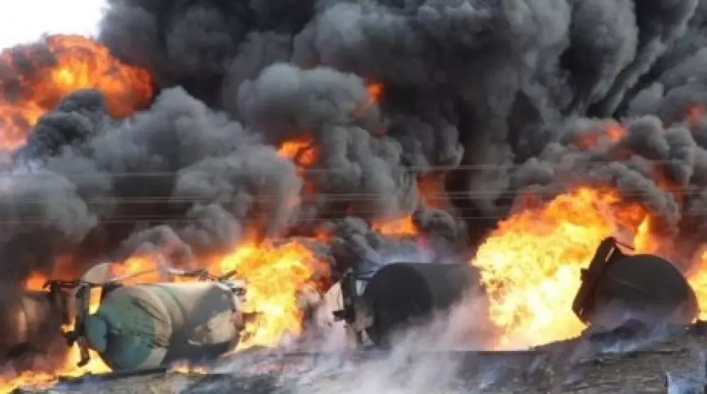 Власти озвучили масштабы взрыва возле Актау - разлив нефтепродуктов произошел на площади 3480 квадратных метров, об этом корреспонденту Tengrinews.kz рассказал руководитель департамента экологии Мангистауской области Ермек Умаров. Речь идет о ЧП, произошедшем в субботу, 16 ноября. В районе промзоны на железнодорожном переезде горели нефтяные цистерны - это произошло в результате столкновения тепловоза и бензовоза. "Площадь, на которой разлились нефтяные продукты, составляет 3480 квадратных метров. После проведенного анализа выяснилась глубина проникновения нефтяных продуктов - это от двух до 50 метров, - поясняет Умаров. - На сегодняшний день проводятся работы по зачистке, уже вывезено на полигон 500 тонн нефтепродуктов". Полная ликвидация последствий аварии, по словам Умарова, займет от двух до трех дней. А в течение недели власти обещают озвучить и материальный ущерб, нанесенный ЧП. Сообщалось, что инцидент унес жизнь помощника машиниста, а сам машинист находится в больнице. По словам врачей, пациент находится в состоянии медикаментозного сна при поддержке аппарата искусственной вентиляции легких.