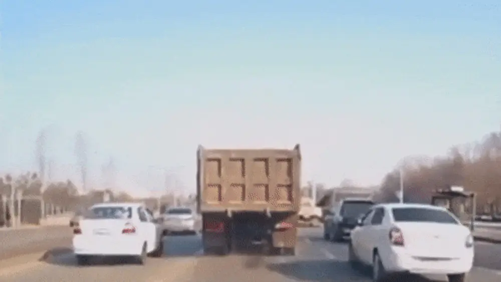 В Алматы грузовик внезапно опрокинулся прямо во время движения. Момент инцидента попал на видеорегистратор, передает корреспондент Tengrinews.kz.