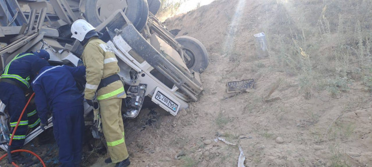 За рулем грузовика находился 23-летний житель Усть-Каменогорска, который, по предварительной версии, не справился с управлением большегруза и допустил его опрокидывание.