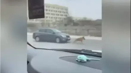 Водитель избежал наказания за попытку сбить собаку в Актау Кадр из видео очевидцев