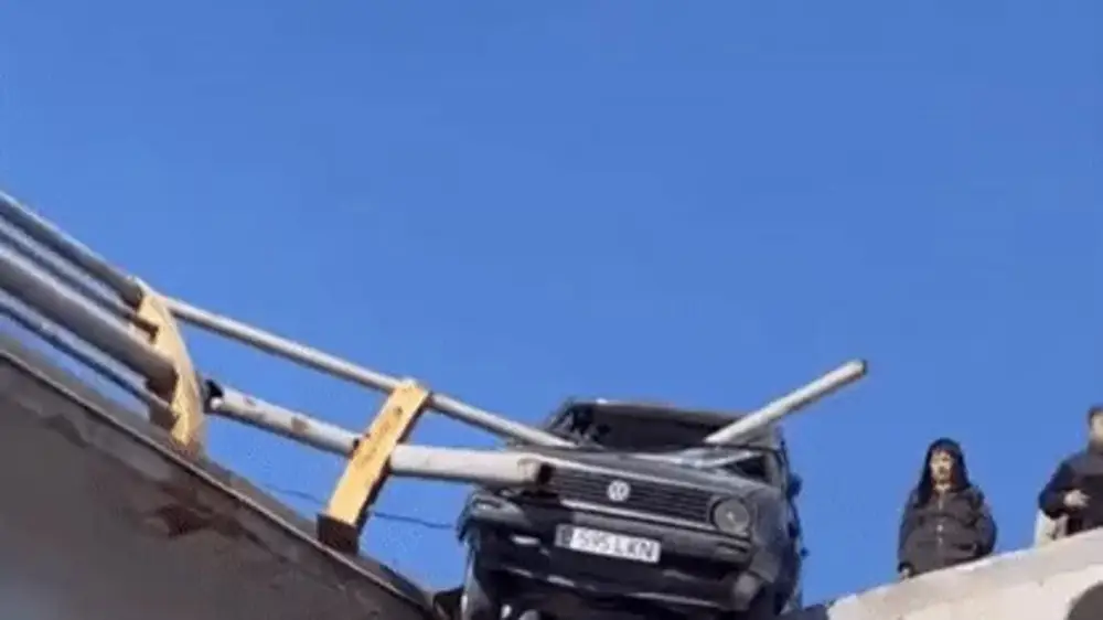 В Алматы водитель Volkswagen столкнулся с Toyota, машина вылетела с моста, передает корреспондент Tengrinews.kz.