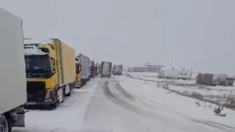 "Касательно представленного видео сообщаем, что оно не соответствует текущему состоянию проезжей части, а также информируем, что данный участок относится к автодороге международного значения М-32 "Граница РФ (на Самару)-Шымкент", км 195-251 (56 км). На данном участке на постоянной основе работает спецтехника в количестве трех единиц КДМ для россыпи противогололедного материала и автогрейдер. Касательно голосового комментария с видео сообщаем, что КДМ после проведения россыпи направляется на ближайший накопитель для новой загрузки противогололедного материала, также на видео видно, что грузовые фуры стоят в очереди на пункт пропуска и мешают полноценно провести очистку и обработку дороги", - пояснил Мугиев.