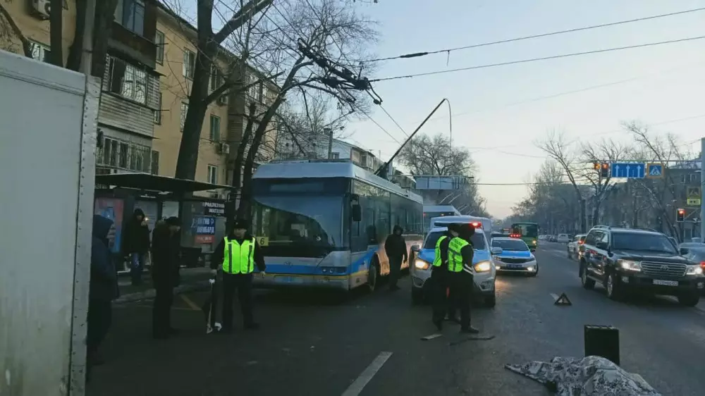 В полиции Алматы сообщили, что водитель троллейбуса находился на проезжей части улицы Шаляпина. В 07:10 водитель автомобиля Kia, двигаясь в западном направлении по Шаляпина, допустил наезд на него. В результате ДТП пострадавший скончался на месте происшествия.