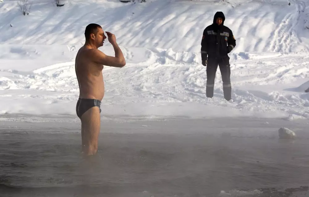 "Идеальная полынья для купания в проруби - проверенное место. Специально организованное. Глубина купели не должна превышать 1,8 метра. Она должна быть ограждена во избежание случайного падения в воду. Для полной безопасности рядом обязательно должен дежурить врач и оперативный караул водолазов", - рассказал старший методист водно-спасательной службы областного ДЧС Анатолий Рожков.