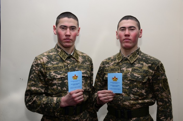 В числе образцовых военнослужащих срочной службы, которые после обучения в учебном центре "Спасск" отправляются в войска, братья-близнецы Рахымбай и Заркымбай Калиаскаровы. Они были призваны из Курчумского района Восточно-Казахстанской области. По словам командиров, это активные, дисциплинированные бойцы, которые уже изъявили желание в будущем продолжить службу в Вооруженных Силах на контрактной основе. За короткий срок братья успешно освоили профессию механика-водителя многоцелевого легкобронированного тягача и получили соответствующие сертификаты. Служить Рахымбай и Заркымбай Калиаскаровы будут в одной воинской части, учитывая столь близкую степень родства.