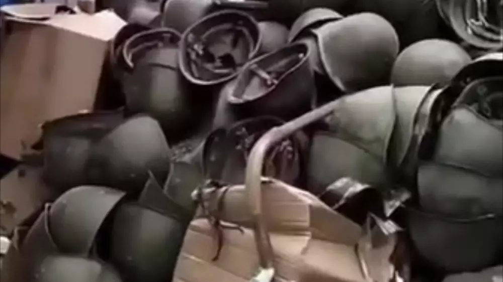 В социальных сетях активно распространяется видео, где военные каски "сдают" на металлолом. Пользователь TikTok уверяет, что это пункт приема металла в Шымкенте.