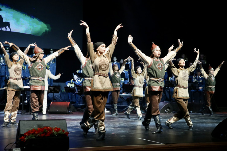 Запоминающимся было также выступление хореографического ансамбля, подарившего зрителям классический военный танец "Сарбаздар биі". Гимном родной земле и стране прозвучала песня "Туған жер", которую а капелла, без музыкального сопровождения, исполнил мужской хор.
