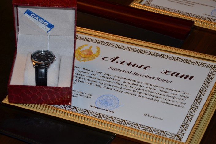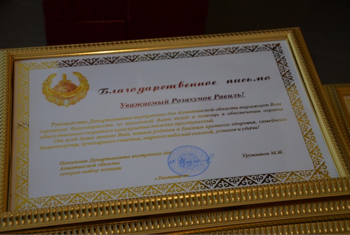 Полицейские Алматинской области поощрили волонтеров и журналистов, которые принимали активное участие в поисках пропавшей студентки Айзады Авлатаровой, передает Tengrinews.kz со ссылкой на пресс-службу областного ДВД. Им вручили грамоты, наручные часы со специальной гравировкой и другие подарки. В частности, благодарностью были отмечены Константин Авершин, Расул Баратов, Данияр Фафролов, Бакыт Карабалаева и другие.