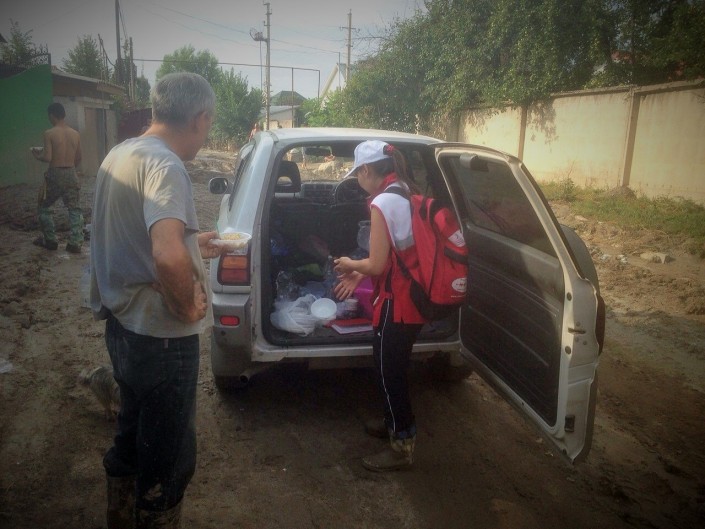 Сотрудник "Красного Полумесяца Казахстана" Антон Шершнев сообщил, что в организованном штабе помощи сейчас работают порядка 50 человек. Свою деятельность волонтеры координируют с сотрудниками акимата. "Трудностей много. Мы начинаем работать с раннего утра и до поздней ночи. Каждый день имеются свои проблемы, различные нехватки. Вот вчера мы испытывали дефицит питьевой воды. Водовозы были, но не все рискуют с них пить воду. Сейчас с этим уже решили. Еще одна трудность, с которой мы столкнулись - это распределение помощи. Не всегда удается отследить людей, которые приходят за помощью - нуждаются они в ней или нет", - рассказал собеседник.