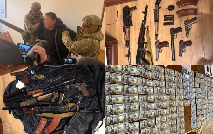 В домах задержанных были проведены обыски, в ходе которых изъято автоматическое и полуавтоматическое оружие. Также обнаружена крупная сумма денег и предметы, "подтверждающие завладение задержанными чужим имуществом".