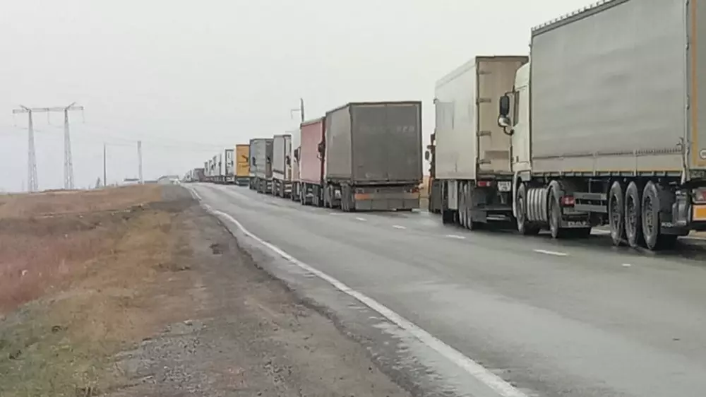 В Департаменте госдоходов по Костанайской области сообщили, что скопление машин образовалось в связи с сезонным увеличением большегрузов, отсутствием ИДК - рентгена в пунктах пропуска других областей, а также введением с 30 октября карантина в Российской Федерации.