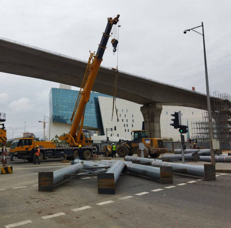 "Завершены строительно-монтажные работы по устройству монолитных балок LRT на пересечении проспекта Тауелсиздик и улицы Калдаякова. В рамках проведения работ по строительству эстакады на вышеупомянутом пересечении на участке с 14 августа 2023 года было установлено частичное ограничение движения", - сообщили в транспортной компании City Transportation Systems (CTS).