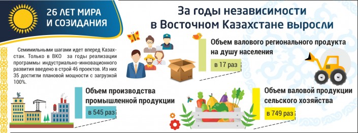 Проект "ВКО в цифрах" представит достижения области за 26 лет независимости. Это не сухие цифры отчетов, а яркая и доступная инфографика. Цифры и факты позволяют в динамике отследить развитие Восточного Казахстана в наиболее значимых сферах, таких как бизнес, образование, здравоохранение. И передают четкую картину того, насколько уверенными и стремительными шаги молодой Казахстан движется в современное будущее.