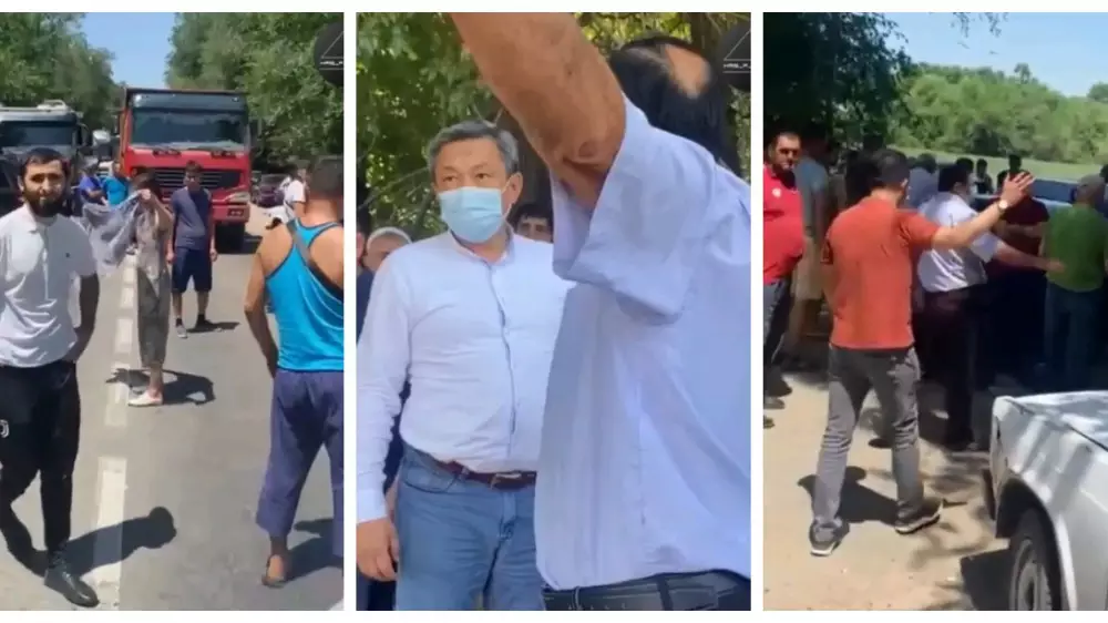 Спустя час после перекрытия трассы к собравшимся приехал аким Талгарского района Кайдар Абдыханов. После этого машины с дороги убрали.