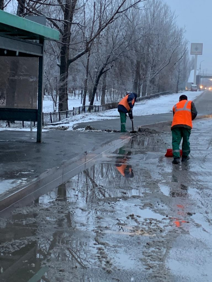 "С утра задействовано 562 единицы спецтехники, 160 пескоразбрасывателей и 1493 дорожных рабочих. В районных акиматах и акимате города организовано круглосуточное дежурство по контролю за производством работ по уборке снега", - добавили в пресс-службе акимата.