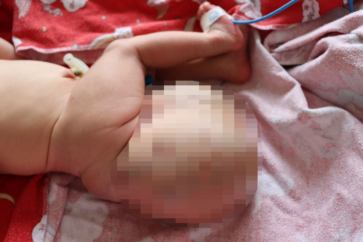 По информации медиков, малыш родился с образованием в основании копчика, которое весило один килограмм. Сразу после появления на свет ребенка перевели из роддома в Центр детской неотложной медицинской помощи в отделение реанимации новорожденных, а после подготовки к операции, на вторые сутки жизни, неонатальные хирурги удалили опухоль.