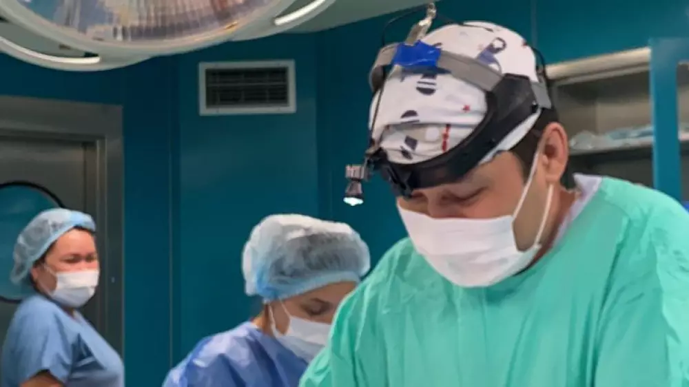 "Сложность операции заключалась в самом расположении образования. Оно сдвинуло все органы брюшной полости в одну сторону, разместившись на всей левой половине. Границы образования находились очень близко к аорте, образование практически лежало на аорте, прилегая к левой почке и мочеточнику, а внизу образование ушло через паховую область, проходя совсем рядом с бедренной артерией в верхнюю треть бедра. Сложность доступа заключалась в том, что нужно было сделать дополнительный разрез в паховой области. Чтобы извлечь образование, пришлось в три руки очень осторожно отделять образование от органов, к которым оно буквально приросло. Образование удалось извлечь, не нарушив целостности, что очень важно", - объяснил заведующий операционным блоком ГБСНП Нуркен Желдибаев.