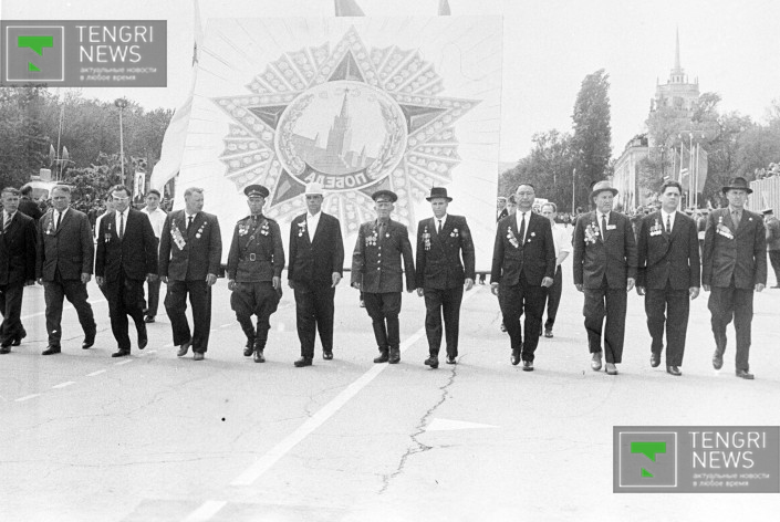 Казахстанцы - Герои Советского Союза в День Победы, Алма-Ата, май 1965 года. Фото: Центральный государственный архив кинофотодокументов и звукозаписей РК.